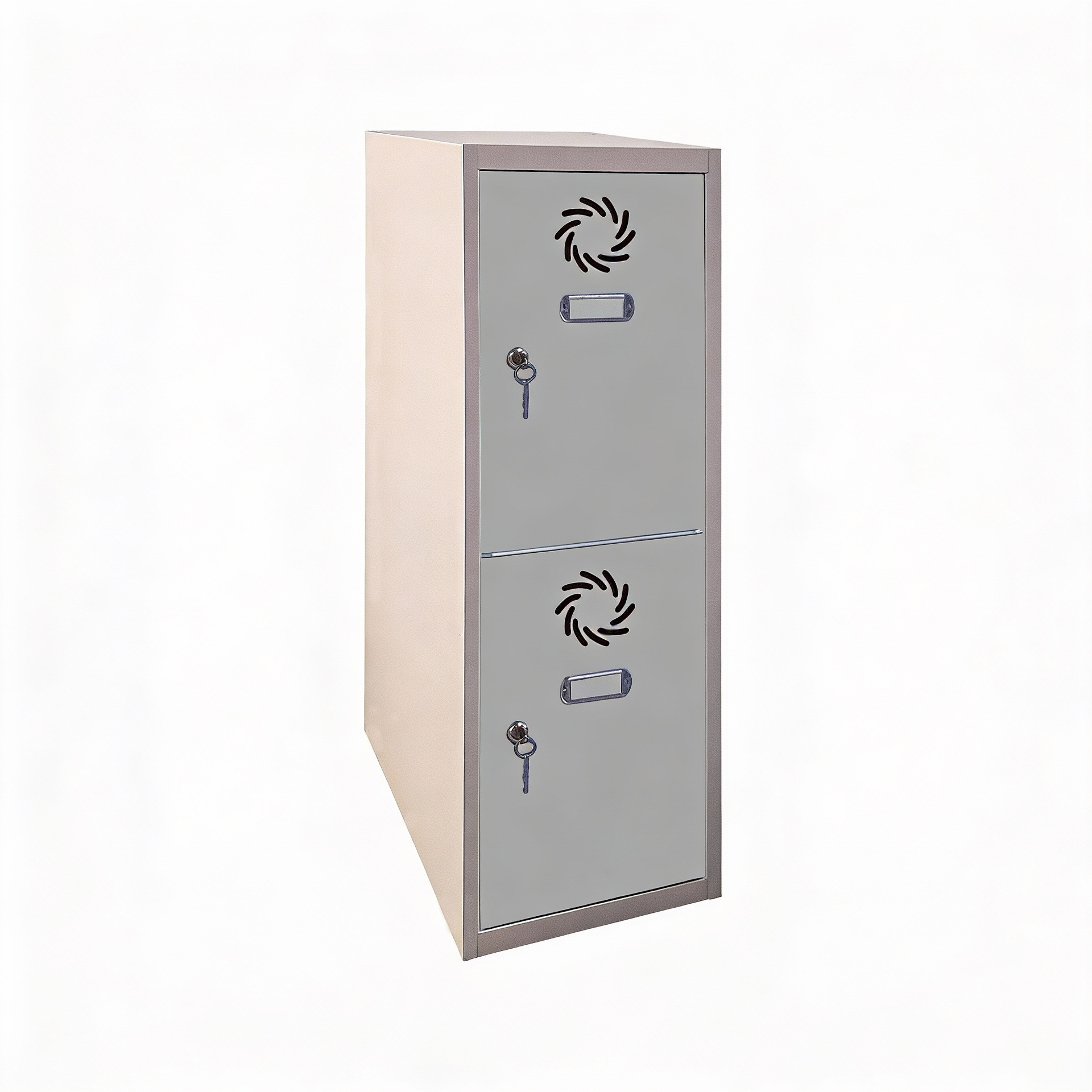 Puertas con doble plegado perimetral, etiquetero y rosetas de ventilación.