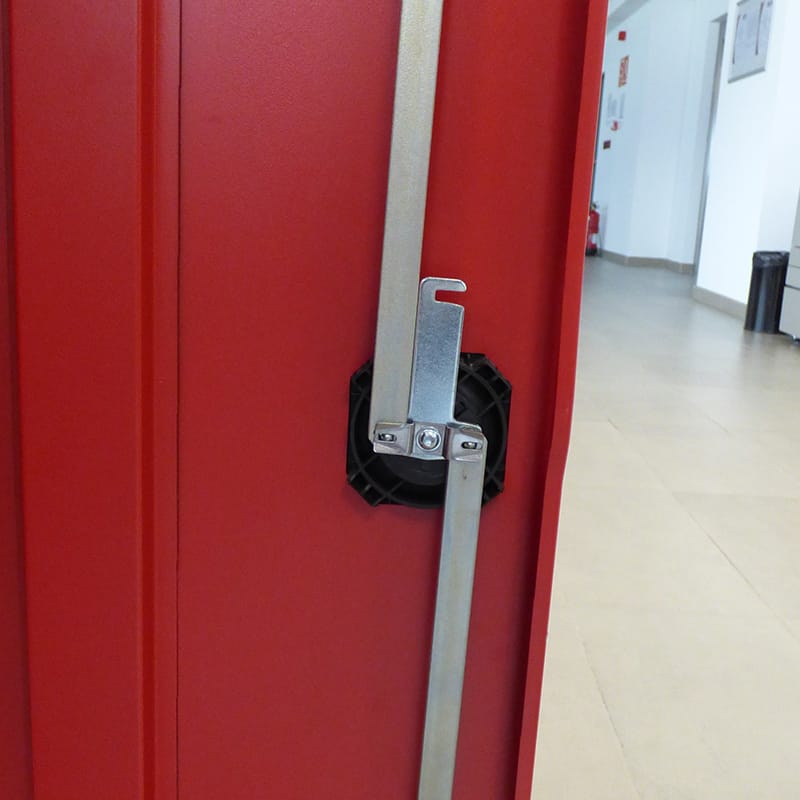 Sistema de falleba (formado por 2 varillas + pestillo + pomo metálico).