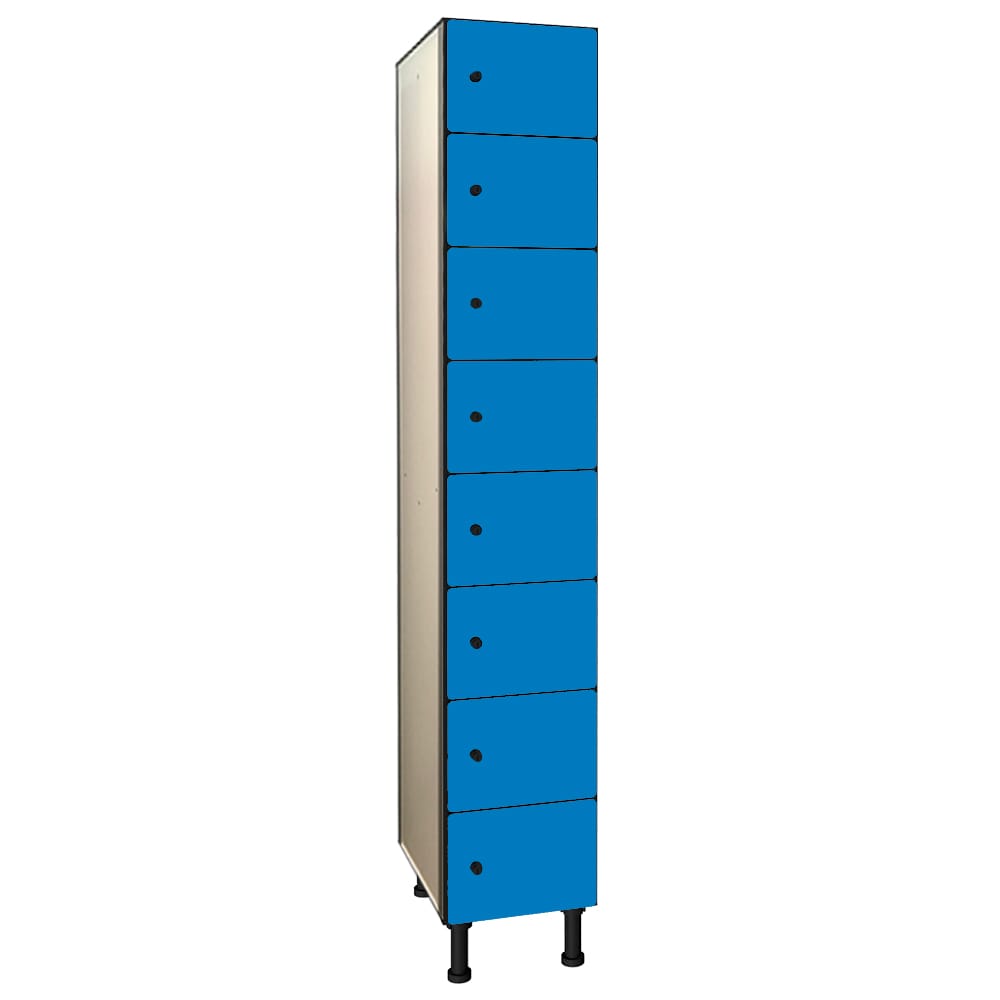 Taquilla fabricada con panel fenólico y perfilería de aluminio, especialmente indicada para espacios húmedos o de uso intensivo. Resistente, higiénica y de fácil mantenimiento.